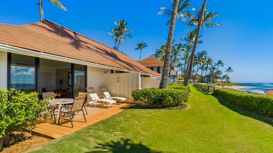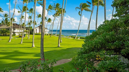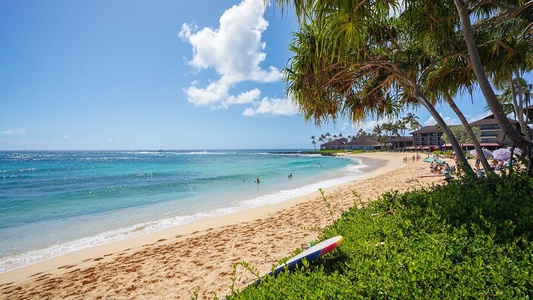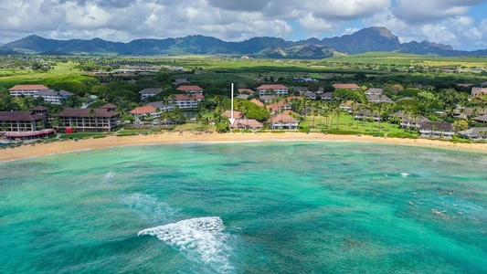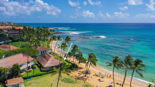 Kiahuna Plantation is the only beachfront condominium resort in Poipu. The plantation style architecture of you Kauai condo is surrounded by over thirty acres of lagoons, lily and koi ponds, swaying palms, tropical flowers, fruit trees, orchids, and plumeria trees accented by meticulously maintained lawns. The white sands of Kiahuna Beach are perfect for a day at the beach and the blue crystal waters are ideal for swimming, surfing, snorkeling, and more.