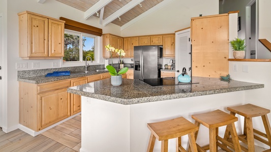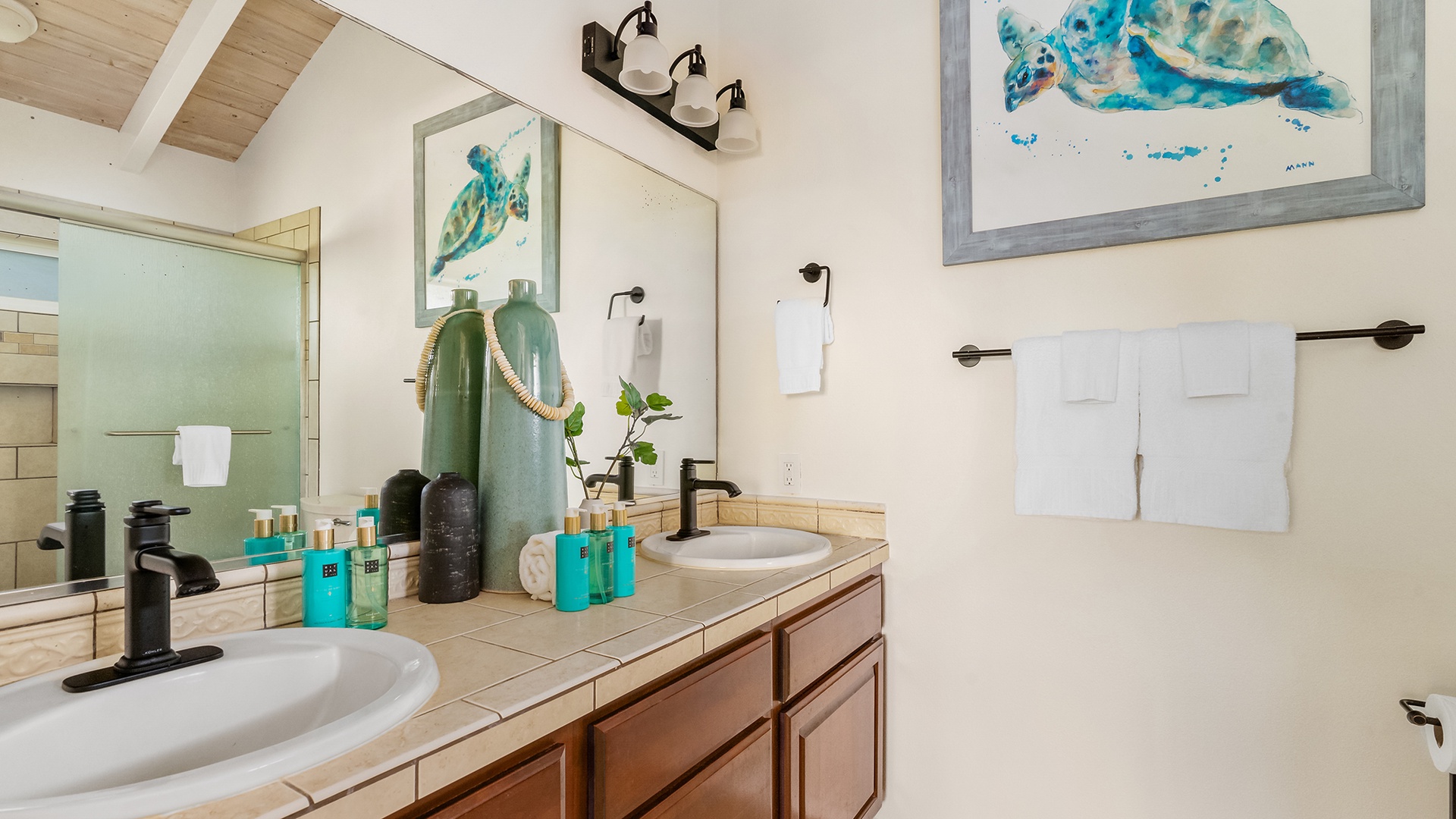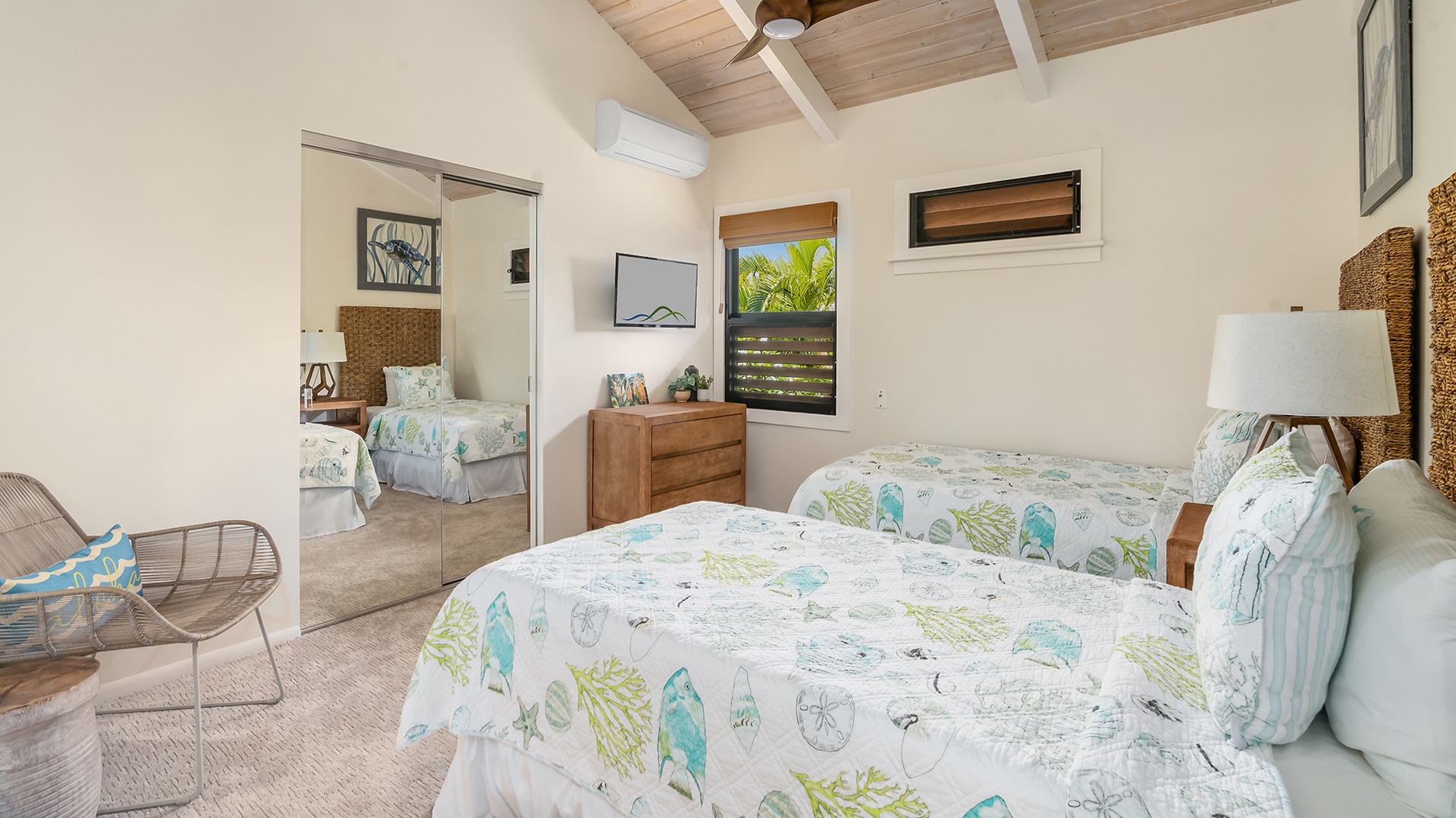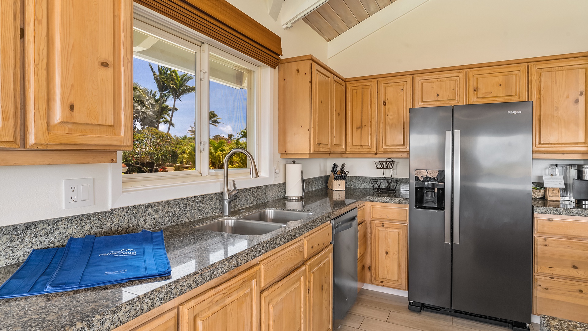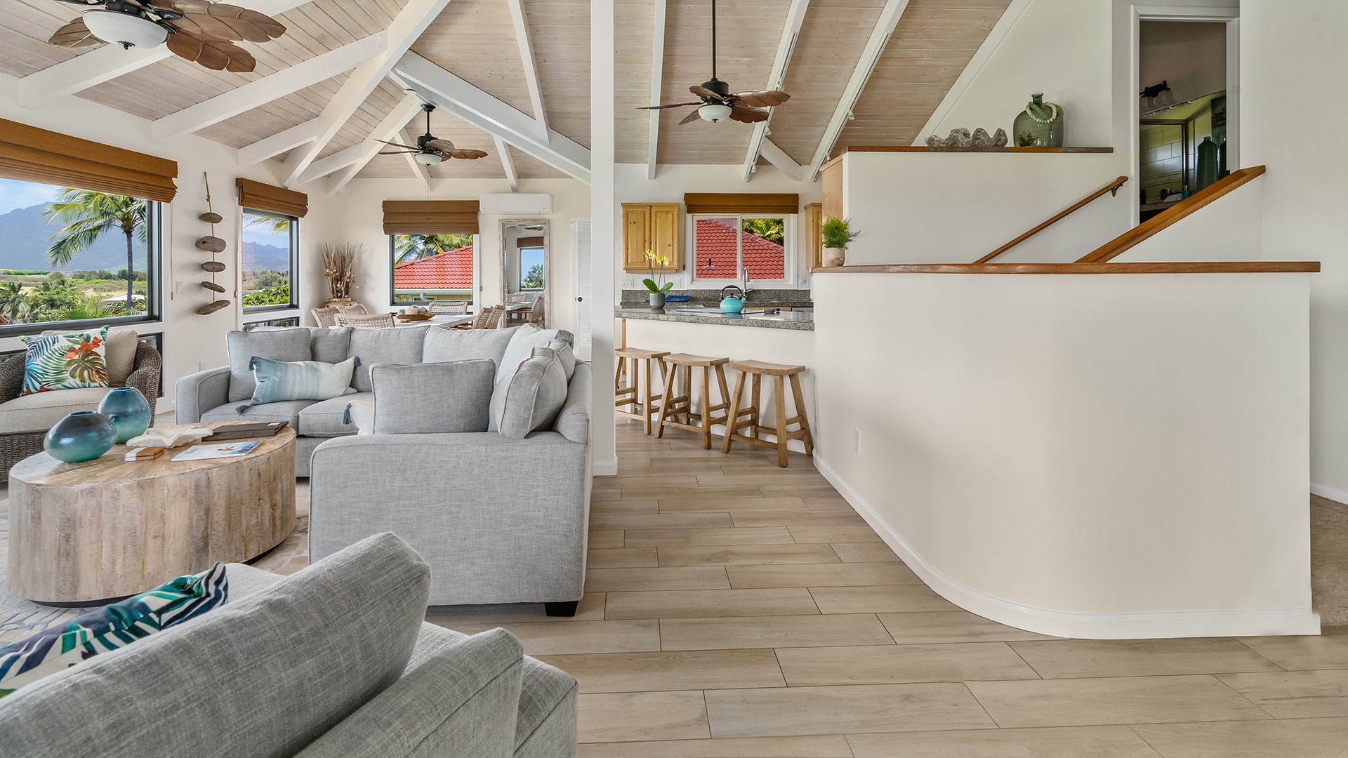 Positioned for views of the morning sunrise glow over the mountains and evening sunsets into the Pacific, with a short walk to both Shipwreck Beach and Poipu Beach, the full air-conditioned three-bedroom home is an ideal place to call home while on Kauai.