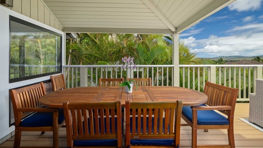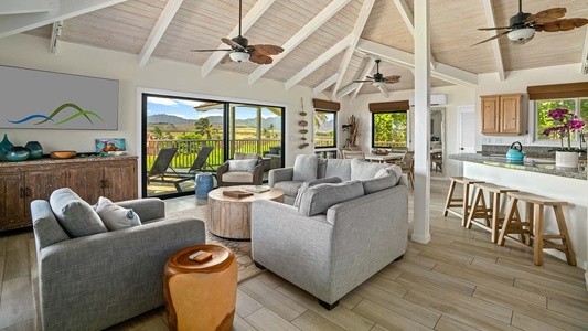 • Great room design with living room seating area, dining room, access to wrap-around lanai