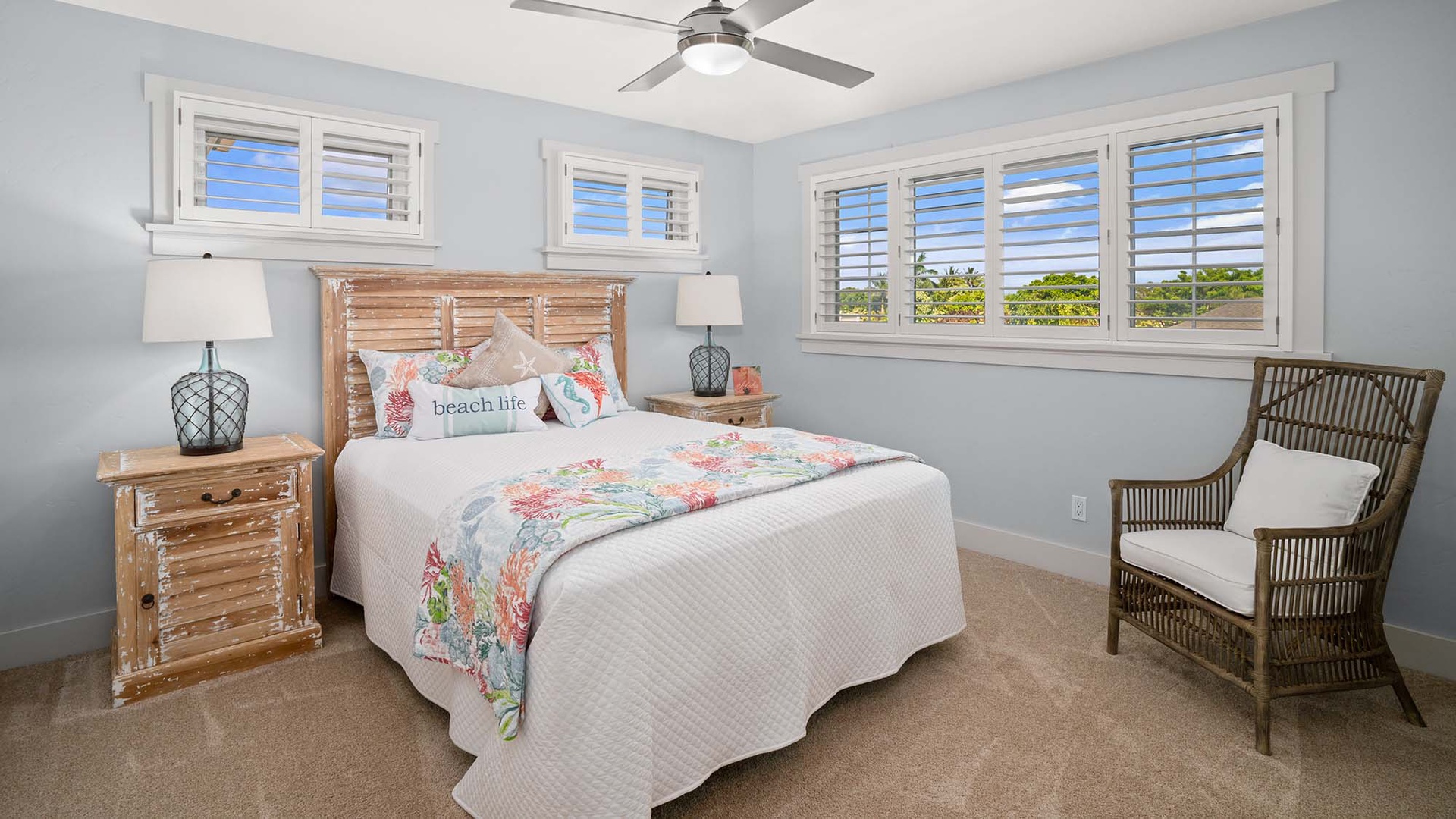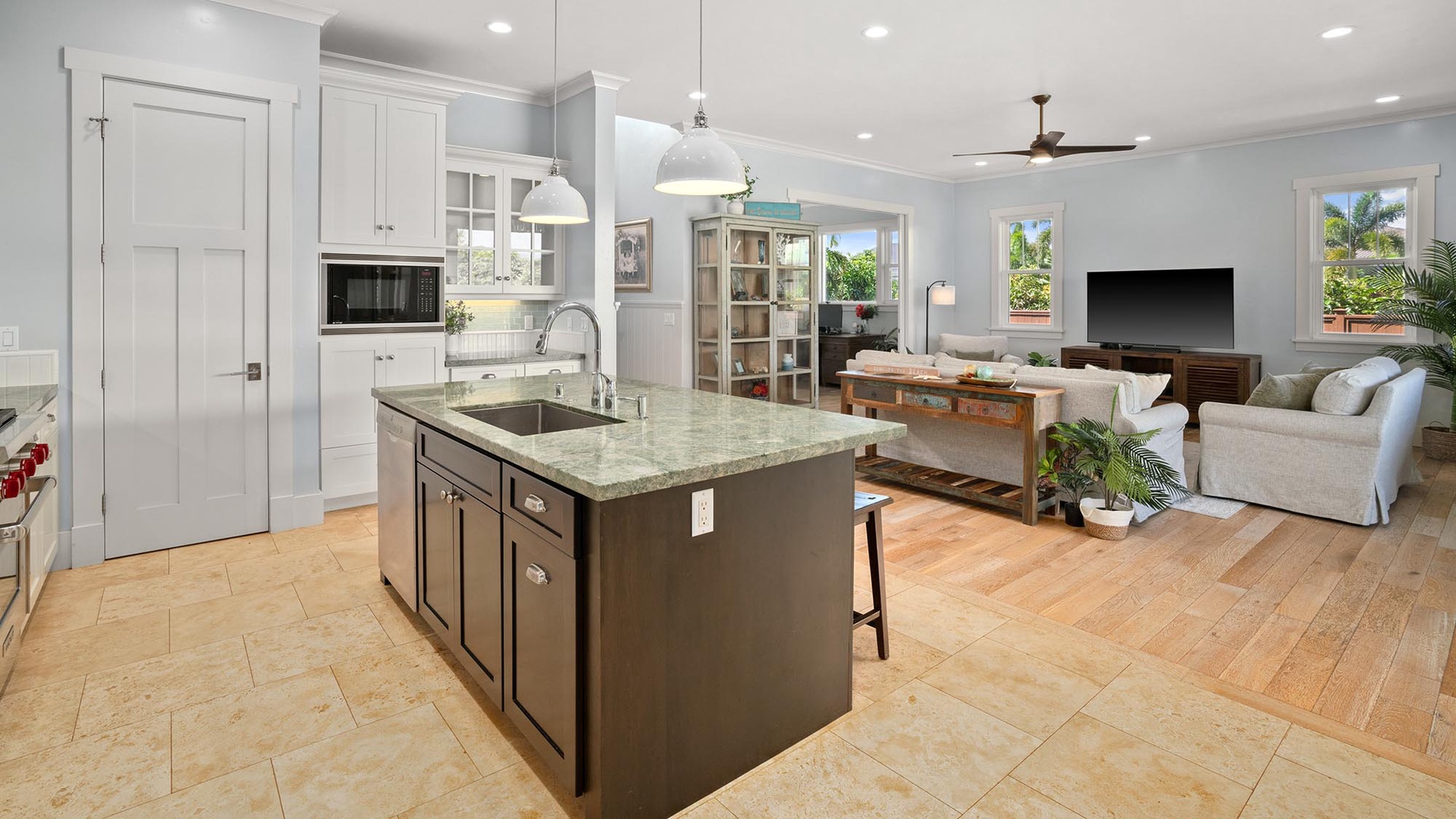 Just minutes from Poipu’s golden beaches, dining, and shopping, Hale Hui Kai makes island adventures effortless. Beach chairs, towels, and a wagon are provided so you can spend your days exploring the shoreline before returning home to unwind in your private backyard sanctuary. Whether you are sipping morning coffee on the lanai, sharing dinner with loved ones, or watching the sun set after a day of discovery, Hale Hui Kai is your gathering place by the sea.