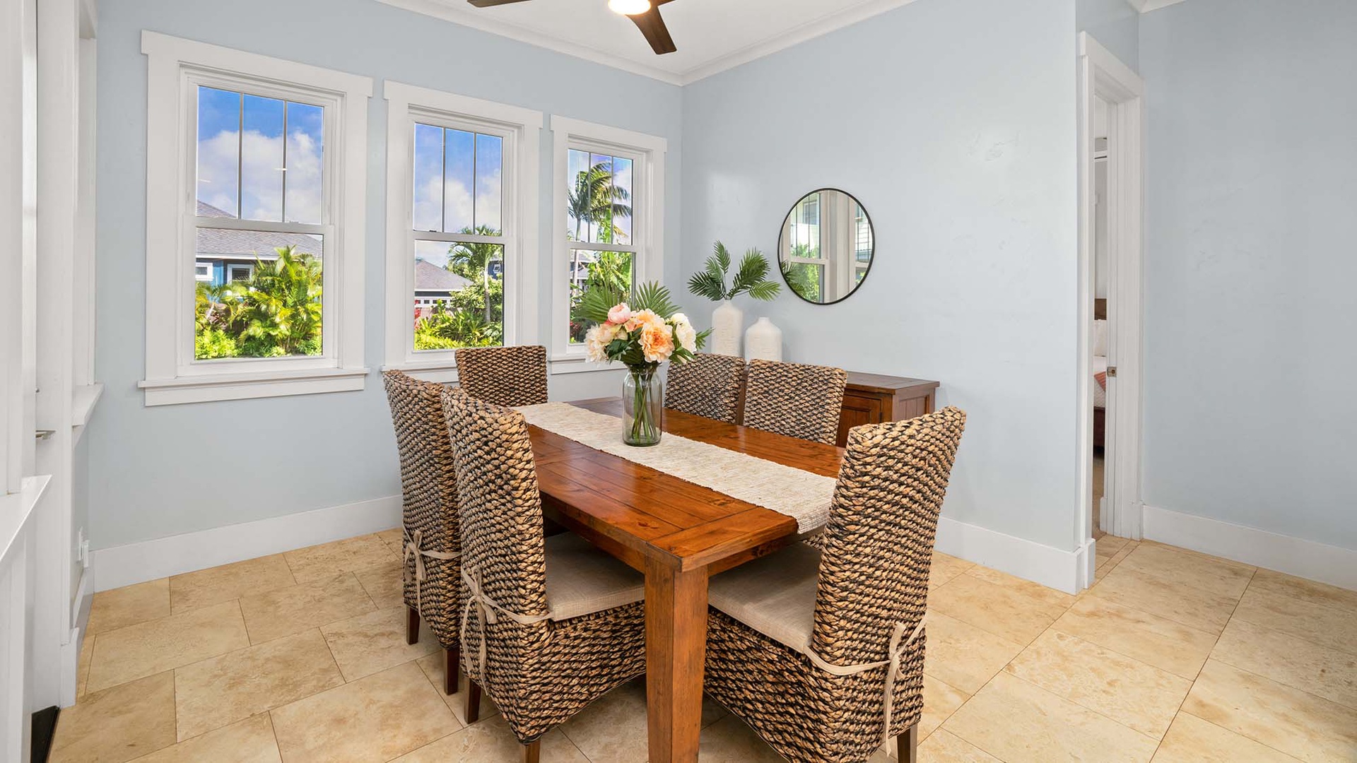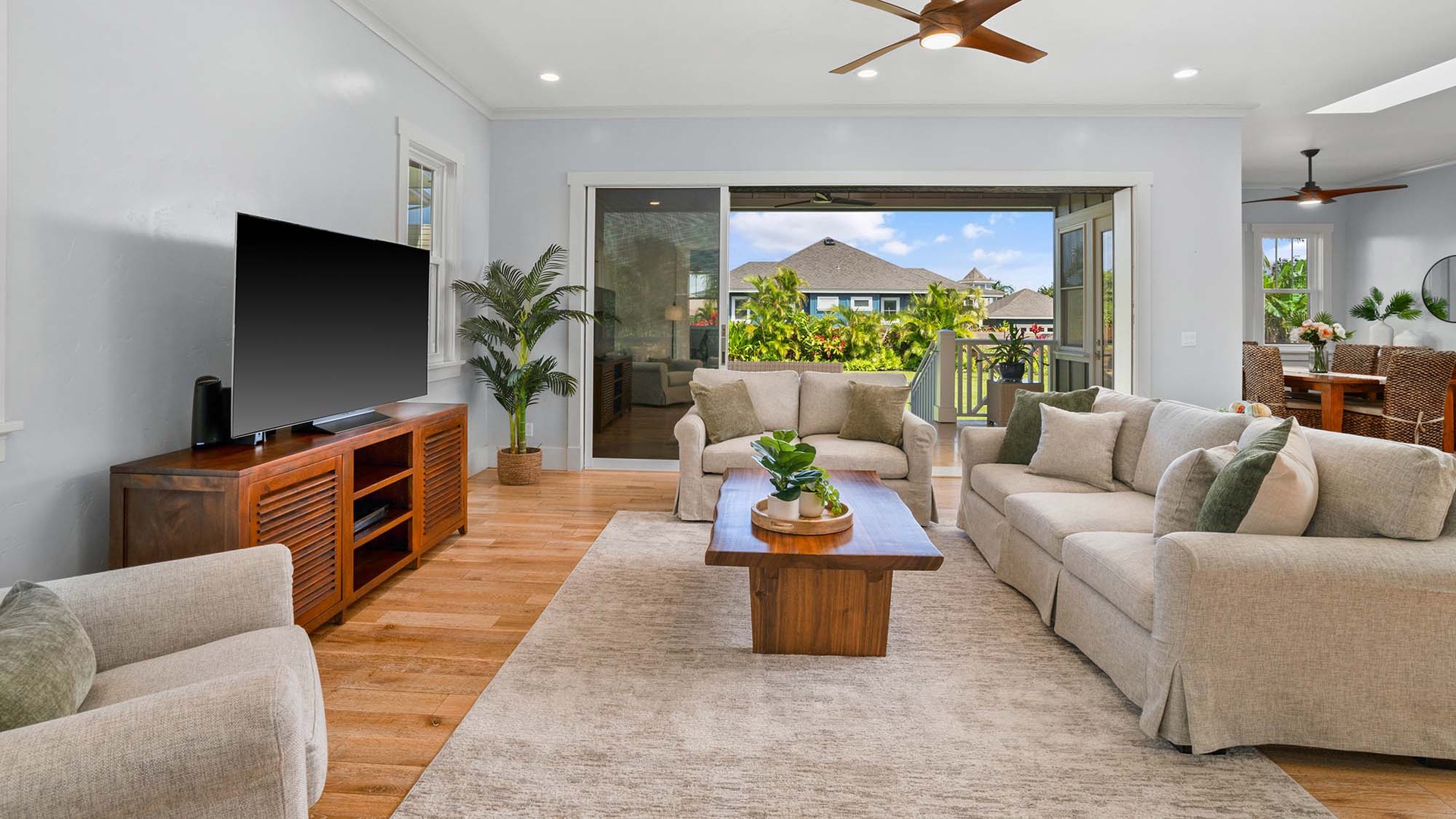 Welcome to Hale Hui Kai, your Gathering Place by the Sea. This spacious three-bedroom plus den retreat in the heart of Poipu Beach Estates. Designed for families and friends to come together, this inviting home combines the ease of island living with modern comforts, including air conditioning in the bedrooms. The open great room, gourmet kitchen, and private lanai create a seamless flow for cooking, dining, and relaxing, while lush tropical surroundings provide a true sense of retreat. With space for up to eight guests, Hale Hui Kai offers the perfect balance of comfort and connection.