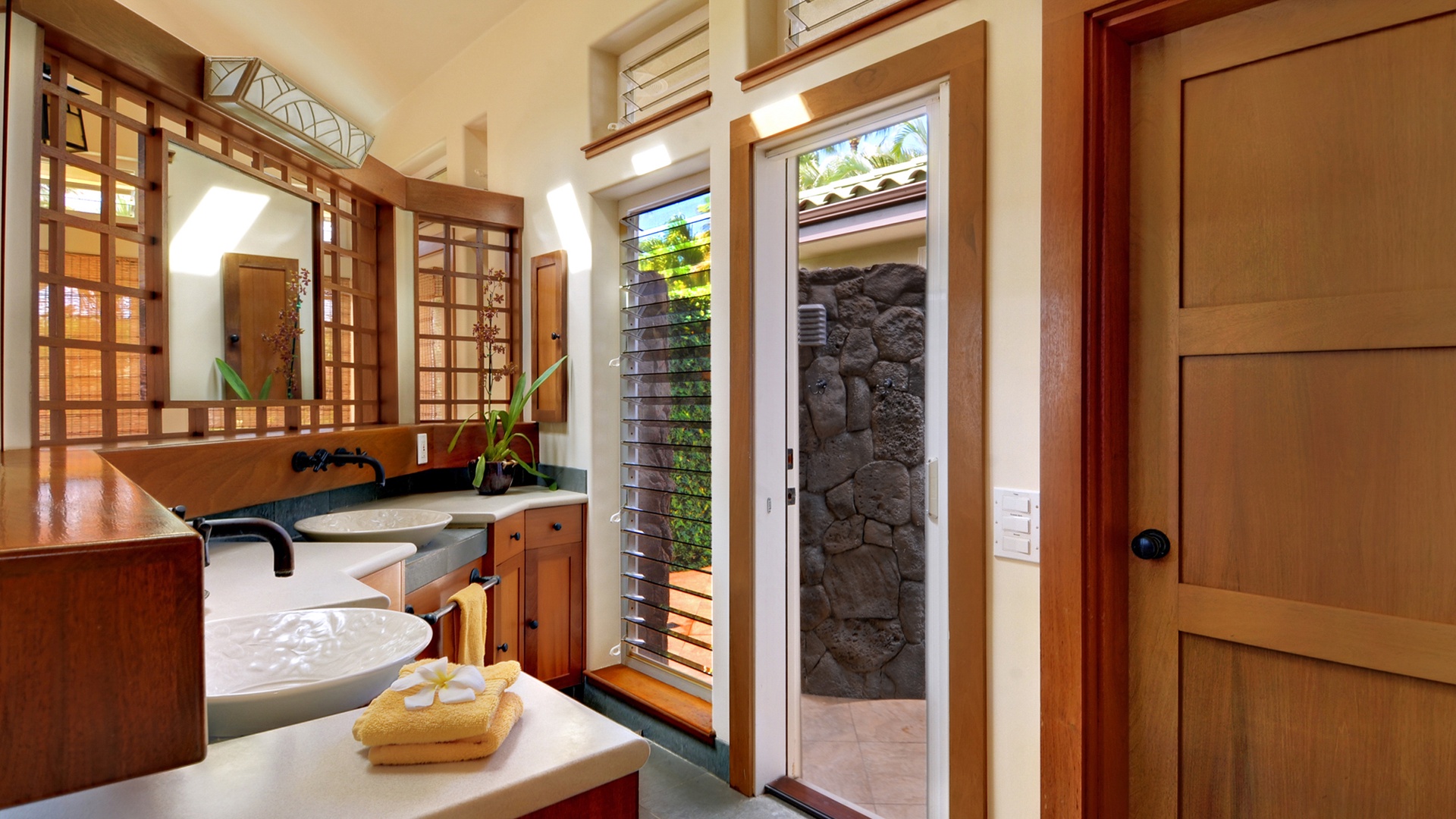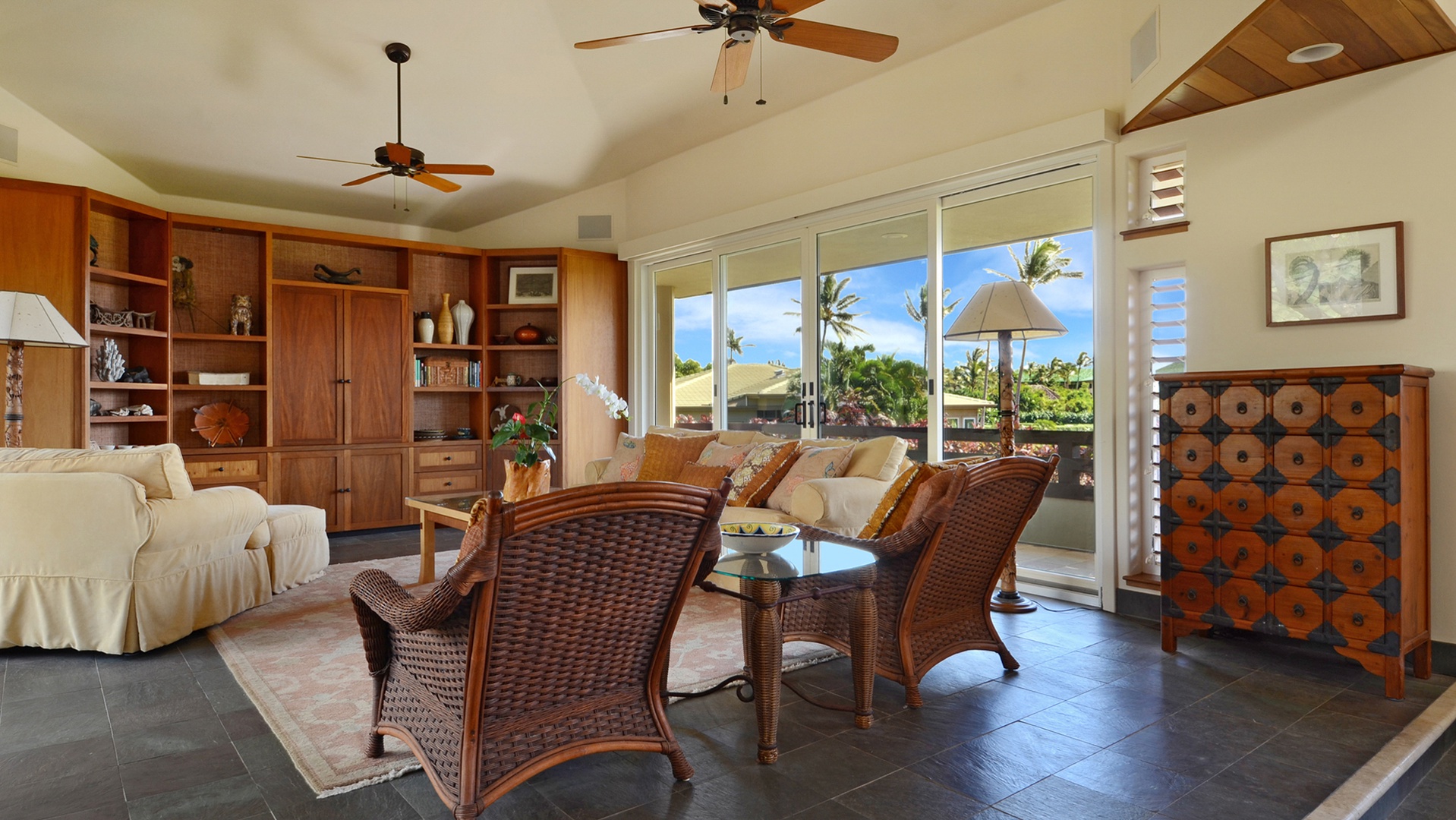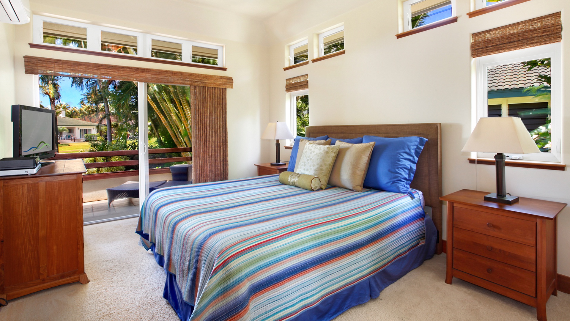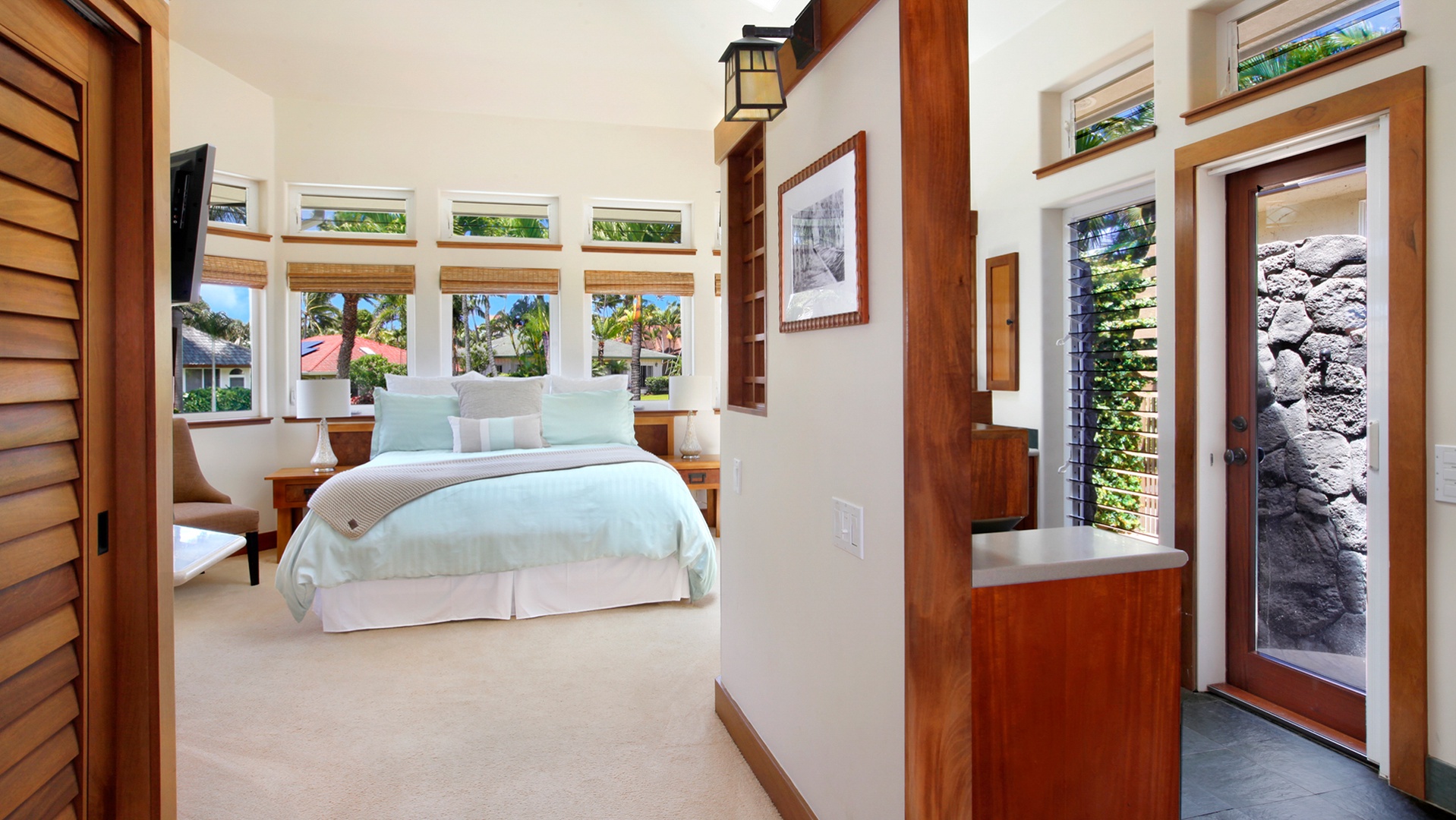 • Master Bedroom Suite – AC, king bed, TV, full bath with outdoor walk-in shower, private sunning lanai
