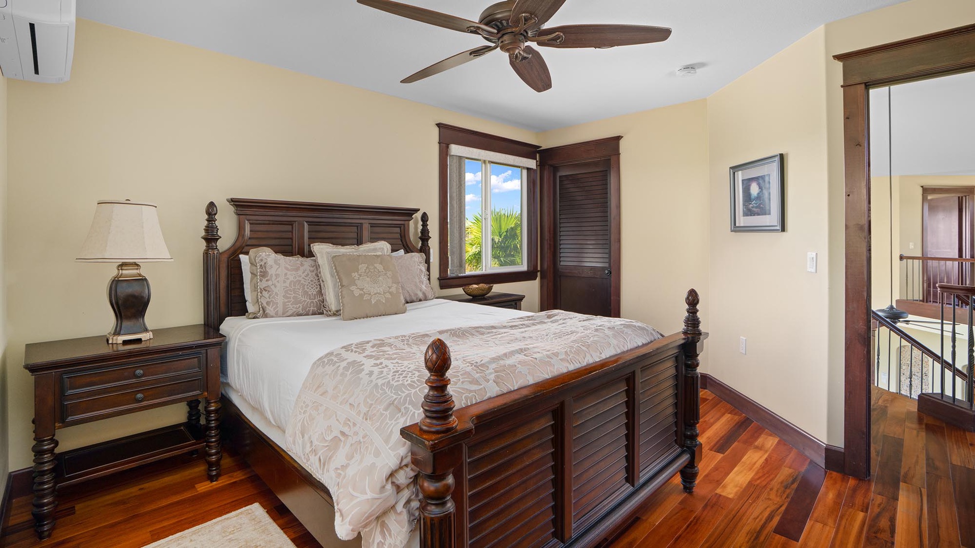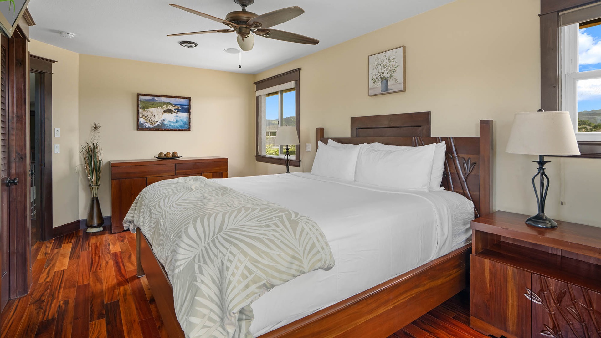 • Third Bedroom – AC, upper level, queen bed, peak view of ocean, shared full bath with shower
