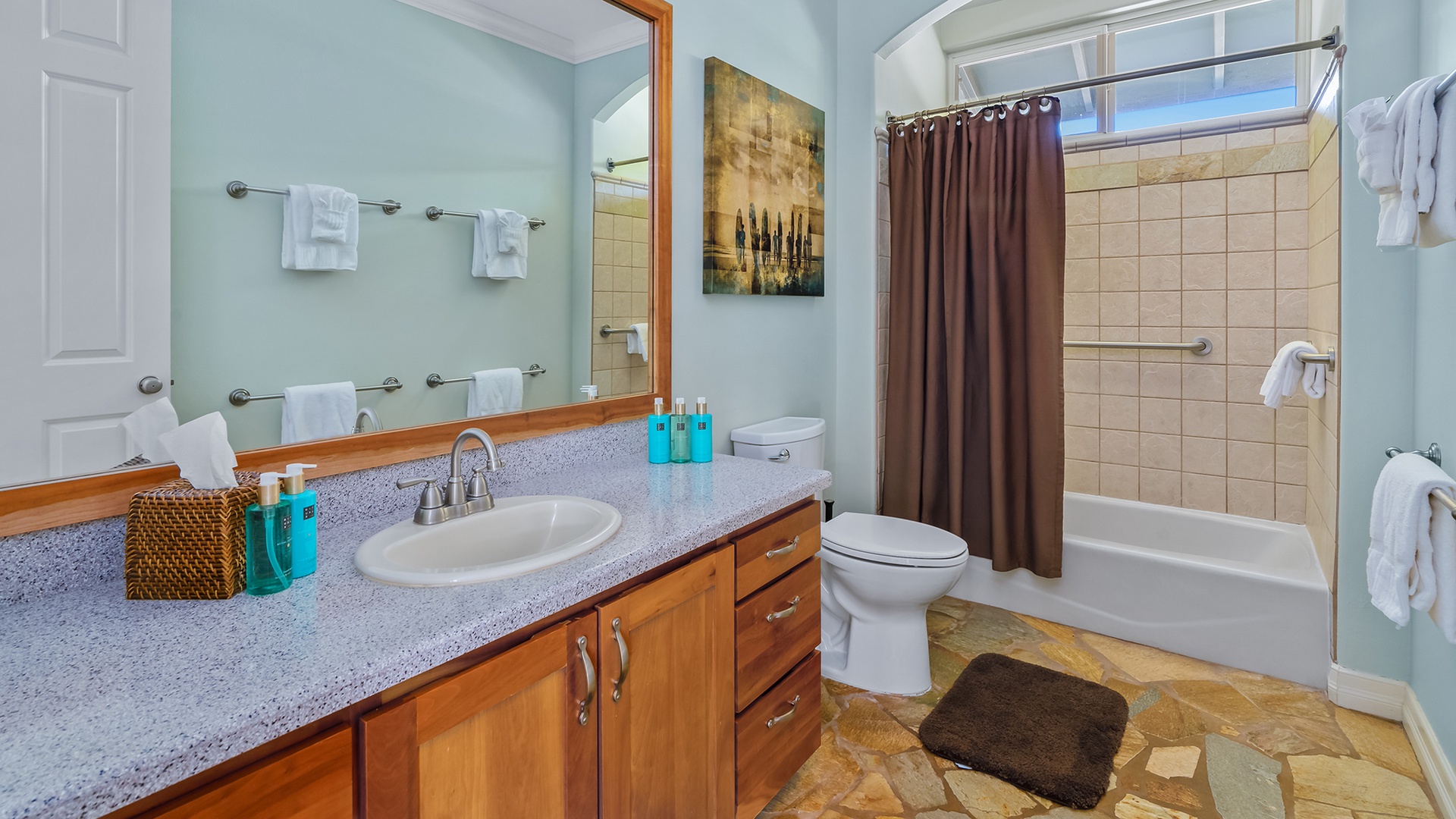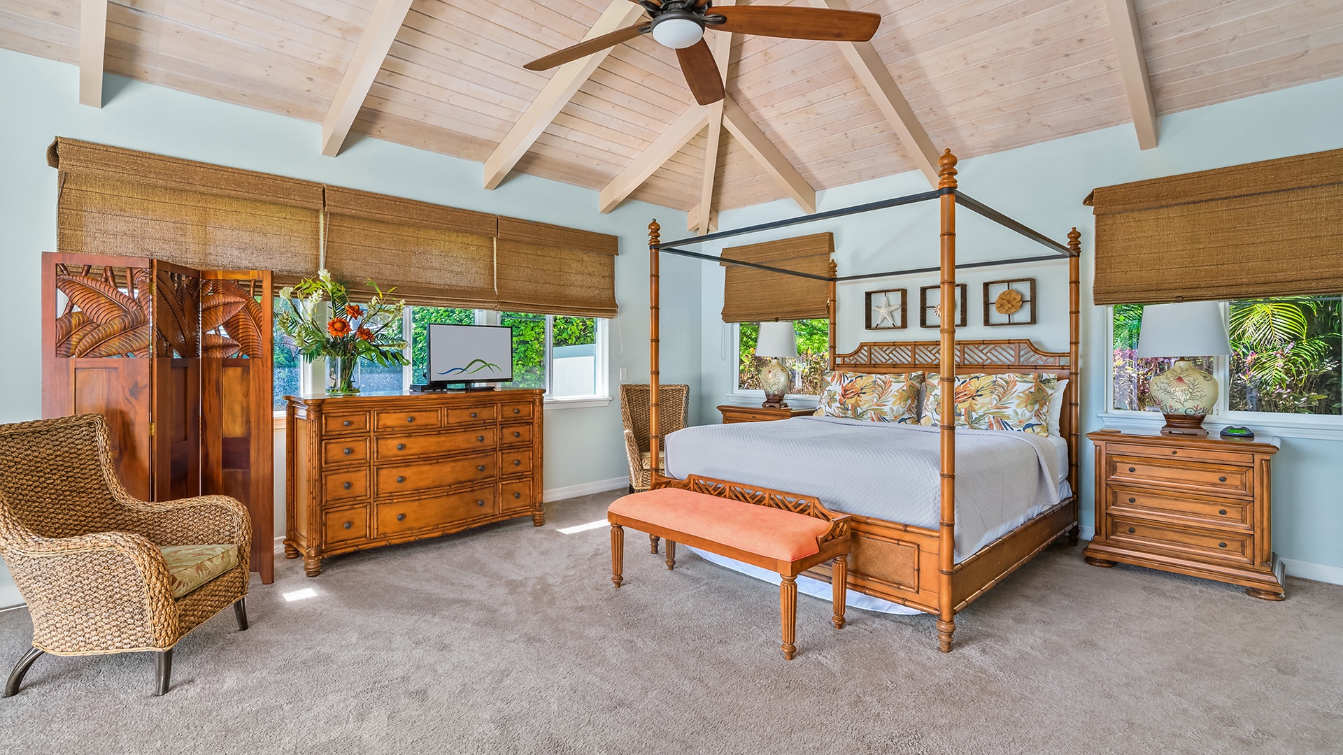 • Third Bedroom Ohana Suite – AC, king bed, TV, wet bar, private full bath with tub and shower combo