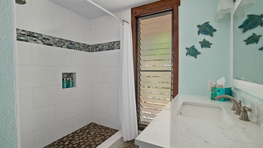 • Master Suite – king bed, AC, TV, private lanai, full bath with walk-in shower