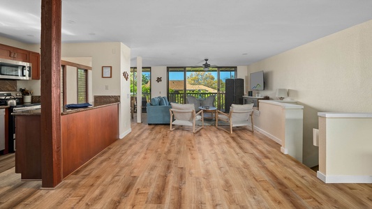 The location of this resort complex is fantastic, especially if you have young kids. The main beach in the South (Poipu) is a less than 5min walk and you pass the pool on the way. Most days we swam in the pool going to or from the beach! This particular unit (500) is on the end so the lanai is private and overlooks vegetation. This resort complex is not real big, which I found especially nice. Walking distances are short moving around. Also, this unit came with a large tub of sand toys, 4 beach chairs, and beach umbrella. We had everything we needed to comfortably lounge on the beach. The space is larger than you’d think, based on the pictures.