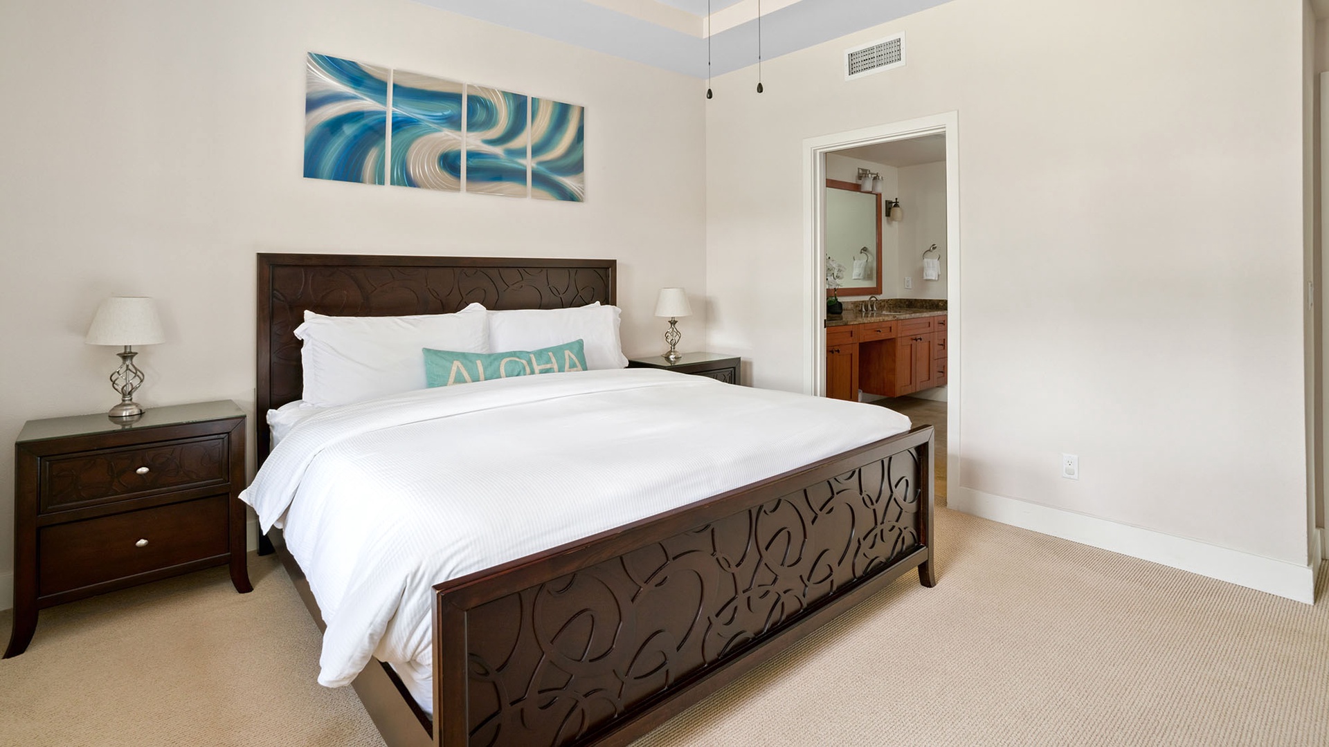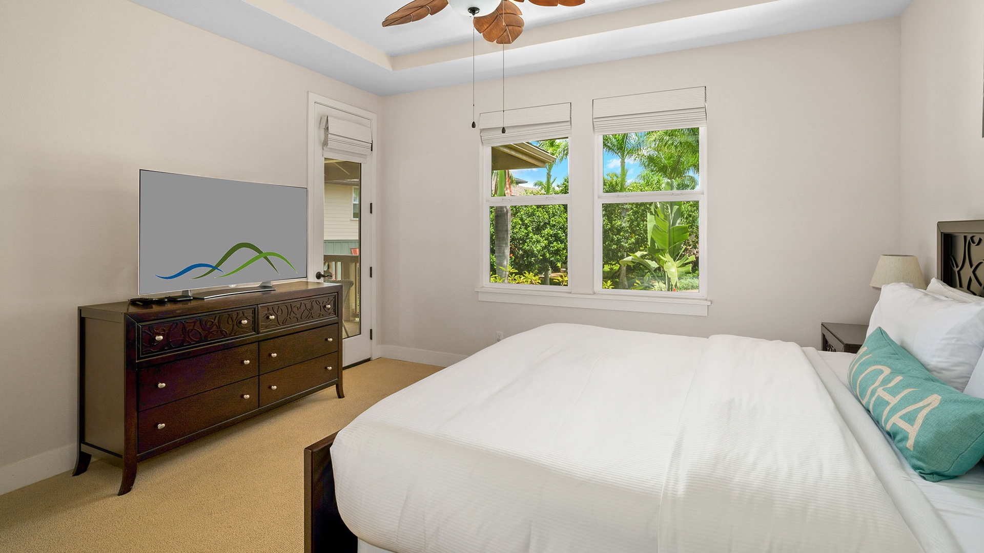 • Master Bedroom Suite – King bed, TV, full bath with walk-in shower, double vanity