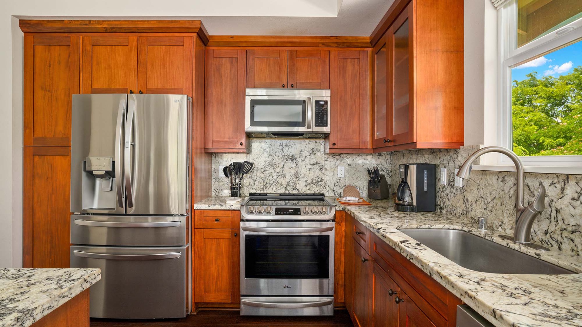 • Fully equipped kitchen with granite counters and stainless gourmet appliances