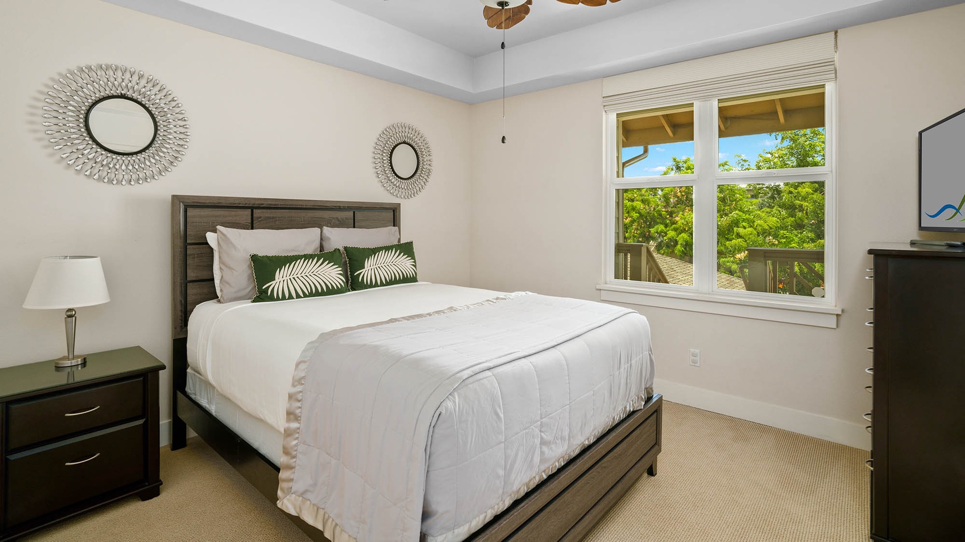 This central Poipu location offers ocean, golf course, and mountain views and is within walking distance to additional dining, shopping, and entertainment at Poipu Shopping Village and a short distance to world famous Poipu Beach.